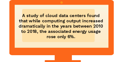 Although the world’s computer centers are multiplying at rapid rates, their energy usage level is decreasing, thanks in large part to cloud computing. Reducing the number of data centers by switching computing operations to cloud providers, significantly lowers carbon emissions and electricity consumption.
