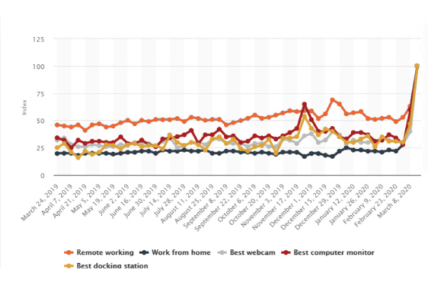 The chart below shows the growth in interest of remote working technologies over the past year: