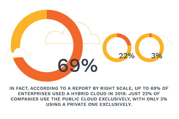 With the hybrid cloud, you can distribute services across both the public and private cloud, then have your host manage some of the functionalities. You can store sensitive data and critical applications on the Private Cloud and host other services on the public infrastructure of your service provider. With assistance, you can always interchange the Private and Public cloud depending on current demands.