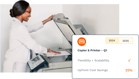 All our printer and copier leasing options include technology services like document management, workflow optimization, and around-the-clock support. Whether you choose inkjet printers, multifunction printers(MFPs), all-in-one printers, production printers, wide-format printers, black-and-white or color laser printers, color printers, or commercial printers or copiers, we make it easy to lease and maintain office equipment while boosting productivity.