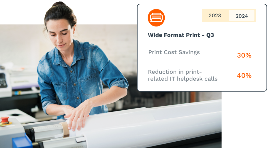 Offload wide format printer-related IT tasks to Office1’s team of MPS experts and relieve the pressure on your overworked IT team. Businesses partnering with an established MPS provider significantly reduce service calls for print-related issues.
